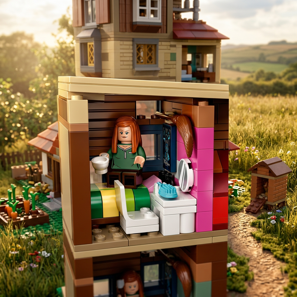 Esta réplica de colecionador, com 2.405 peças, reproduz com técnicas construtivas sofisticadas toda a tortuosidade que faz da Toca um lugar único: pisos inclinados, paredes desalinhadas e a estrutura que parece desafiar a gravidade de propósito.