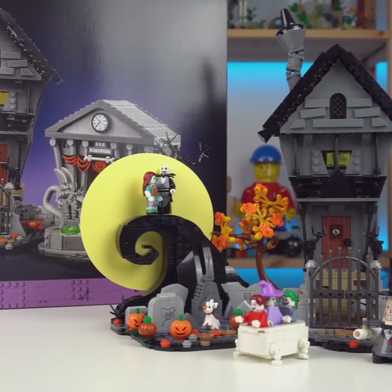 Inspirado diretamente no filme, chega com 2.193 peças para recriar a famosa Colina Espiral de Halloween Town, o portal da Árvore de Natal e muito mais. Ideal para montar, brincar, expor e colecionar.