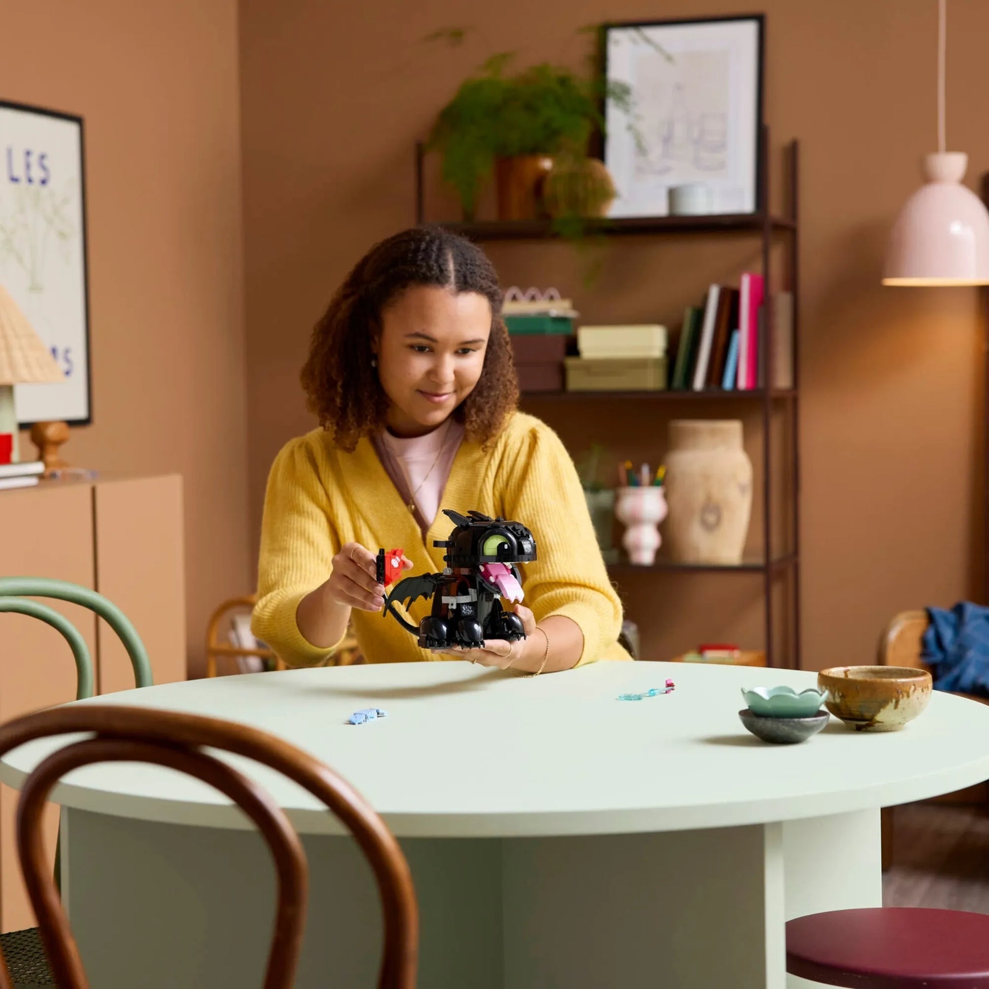O set traz partes articuladas para você posar cabeça, mandíbula, asas e cauda, deixando a peça cheia de personalidade.