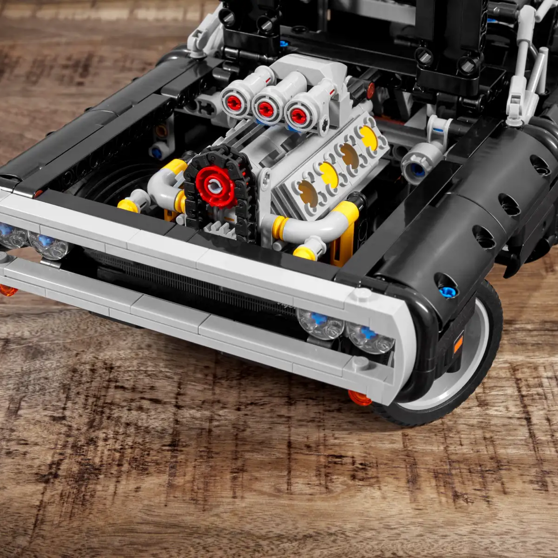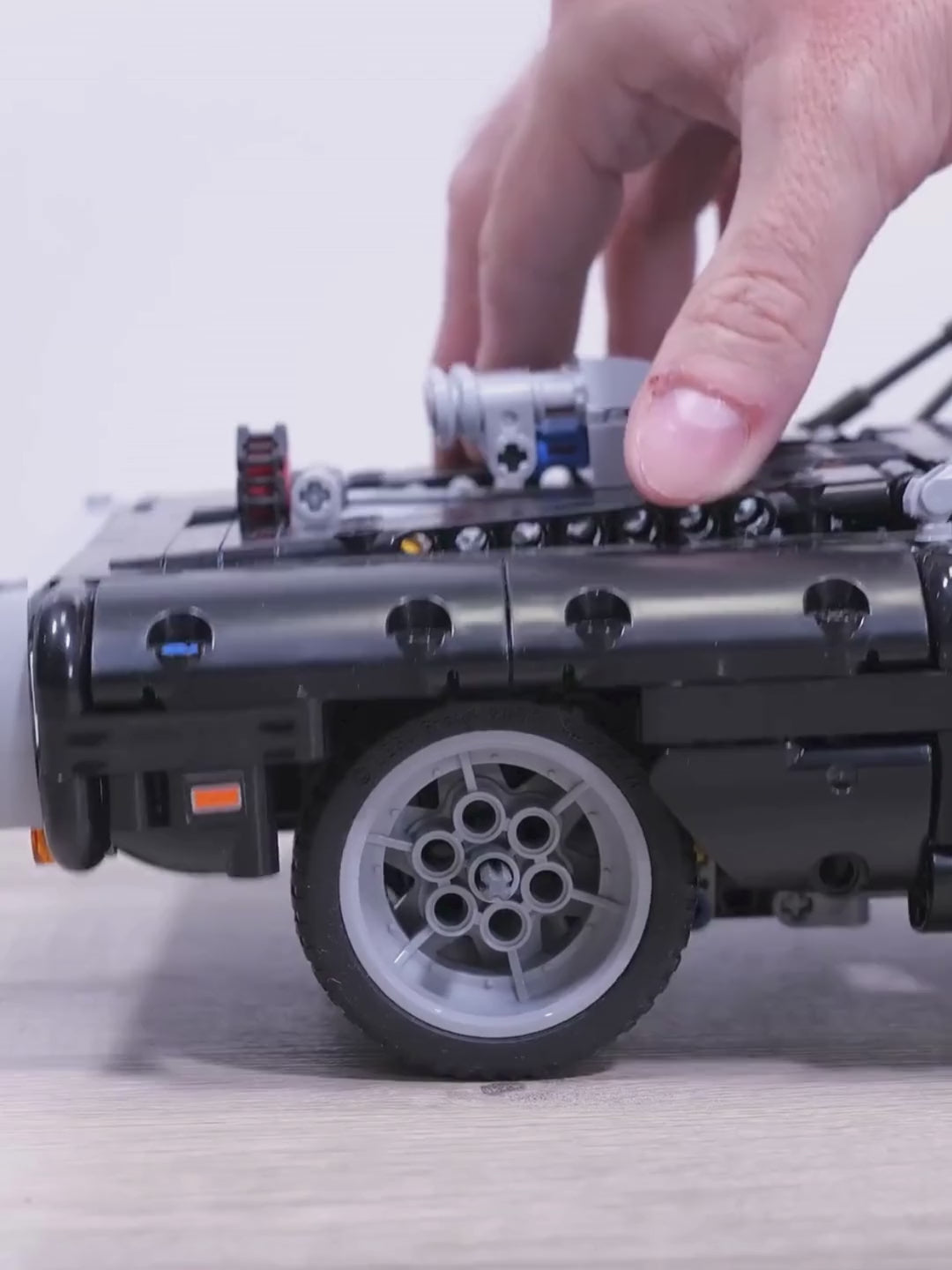 Motor V8 Funcional: Oito cilindros com pistões que se movimentam de verdade conforme você desloca o modelo. A mecânica do V8 original foi traduzida em blocos com fidelidade técnica impressionante, permitindo que você veja e sinta o funcionamento do coração deste clássico.