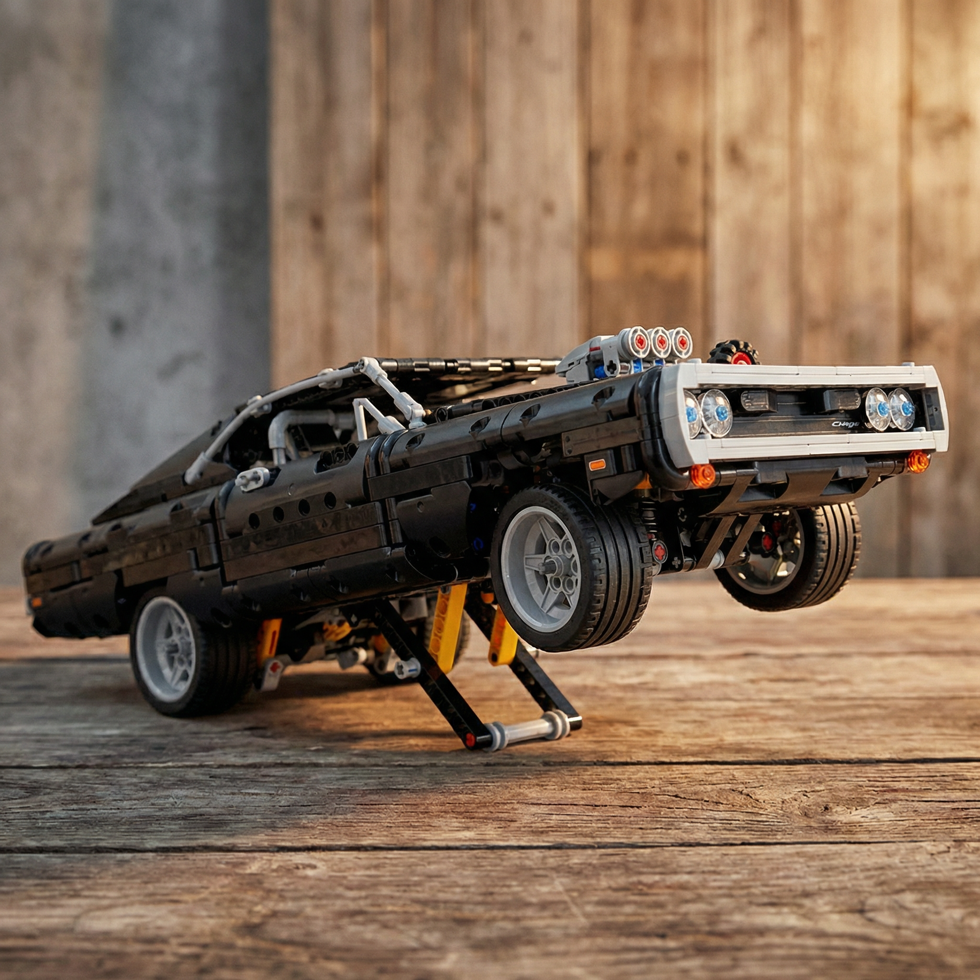 Suspensão Independente: As quatro rodas contam com sistema de suspensão individual, replicando o comportamento dinâmico do Charger original em cada curva e terreno irregular.