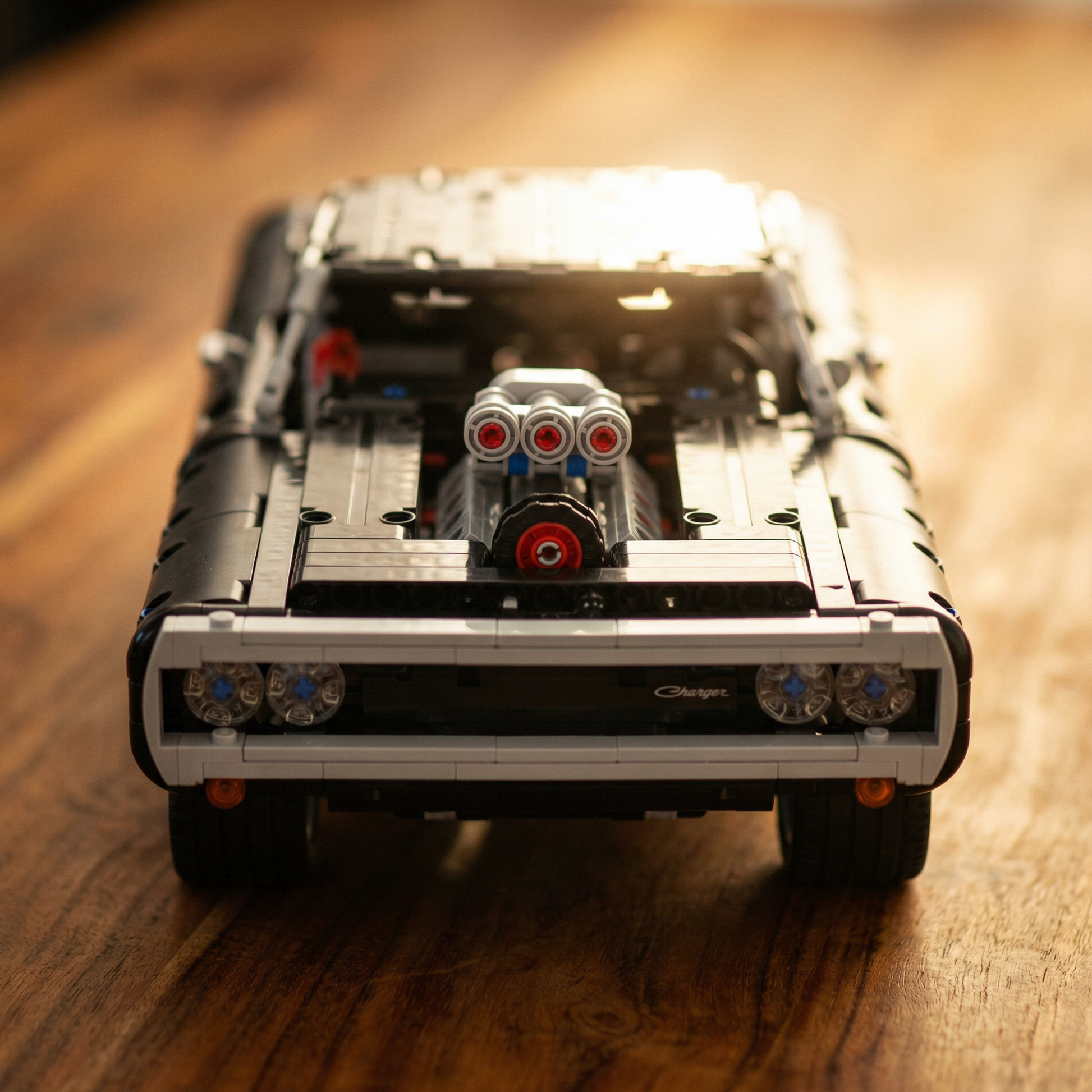 Nitro no Porta-Malas: Um dos detalhes mais icônicos do carro das telas está reproduzido com precisão. O compartimento traseiro abriga o sistema de nitro que imortalizou o Charger no imaginário pop.