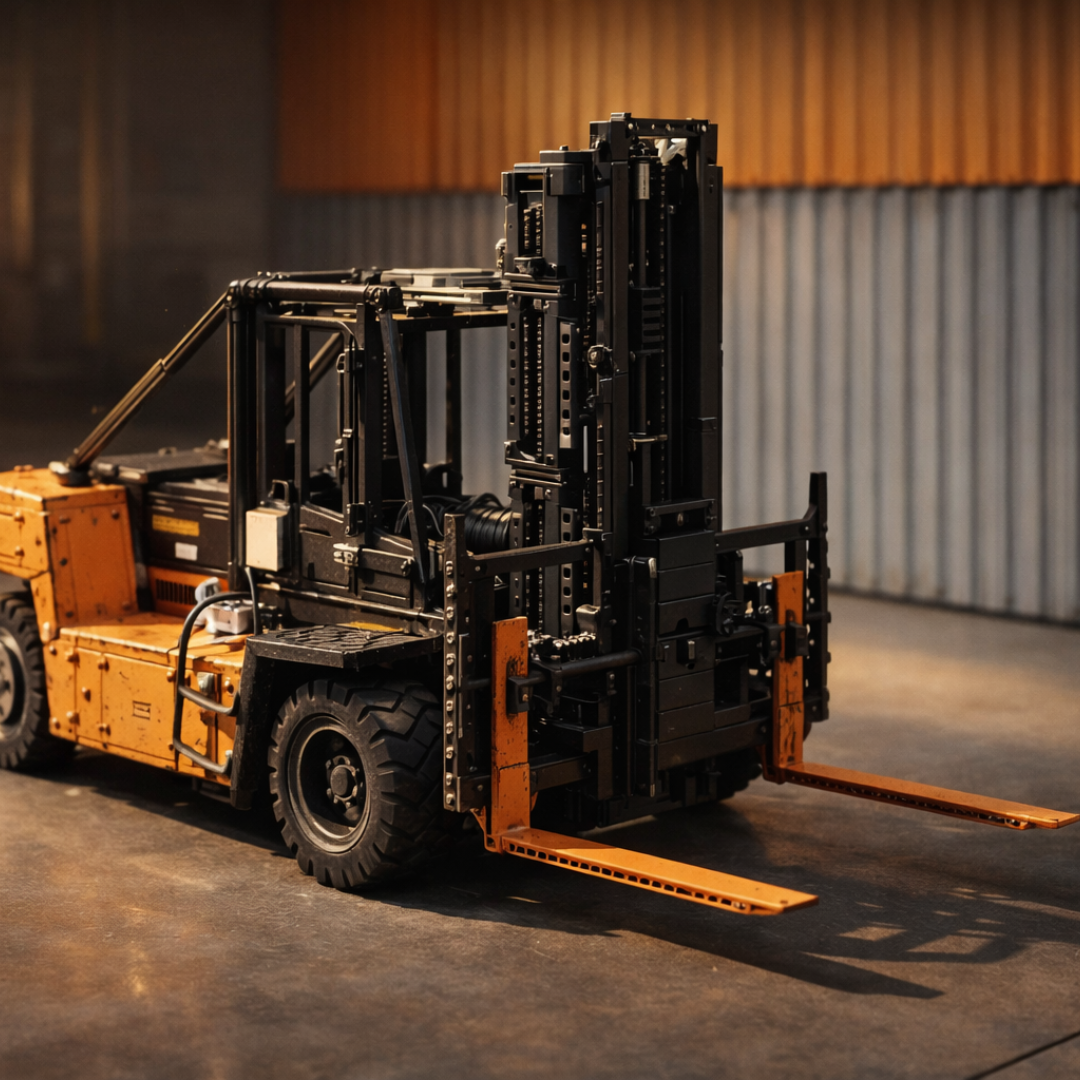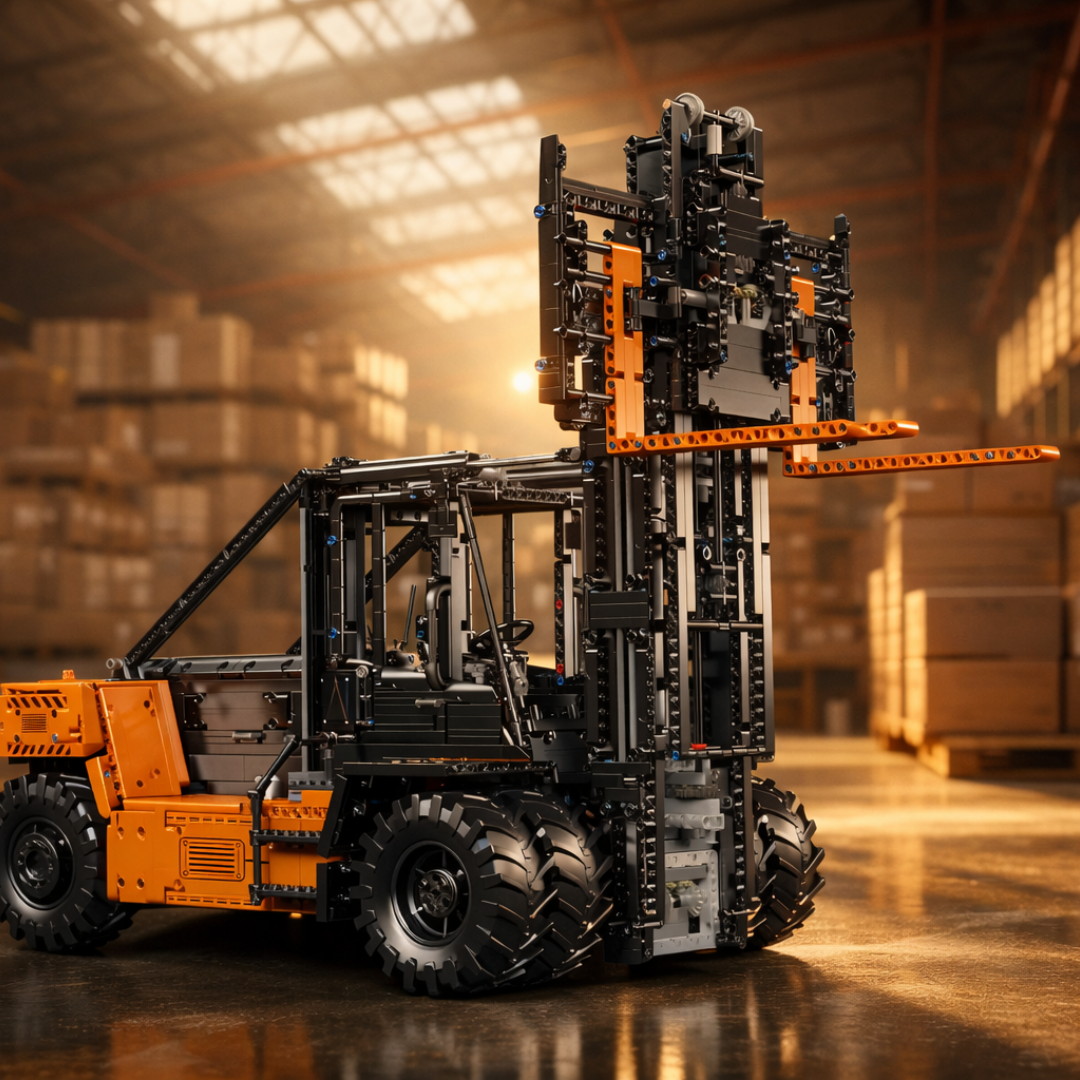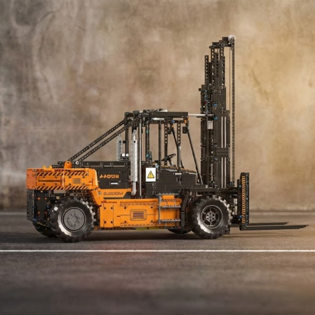 Para quem deseja expandir o canteiro de operações, a Empilhadeira de Corredor com 1.506 peças é a companheira ideal: mais compacta e especializada em operações de armazenagem vertical, ela complementa a robustez desta flagship e forma um conjunto industrial completo para exibição.