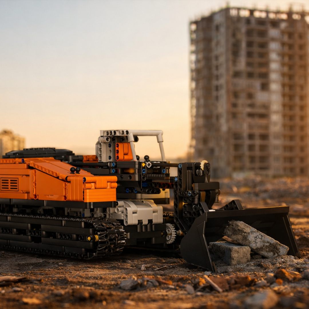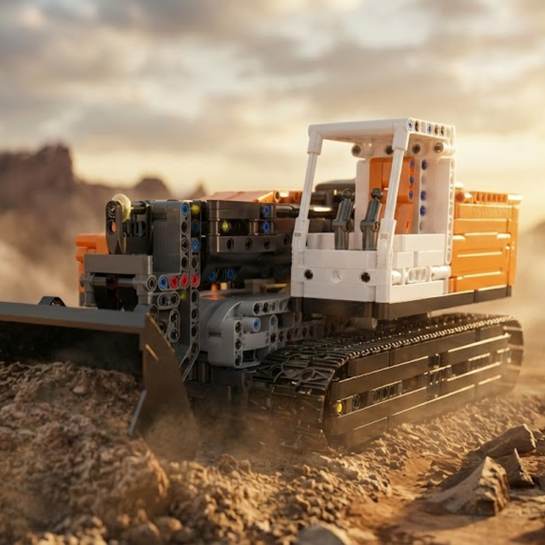 Há algo de hipnótico no movimento de uma escavadeira real: a lentidão calculada do braço articulado, o som grave do sistema hidráulico respondendo a cada comando e a esteira que avança sobre o solo como se fosse parte viva da terra que escava.