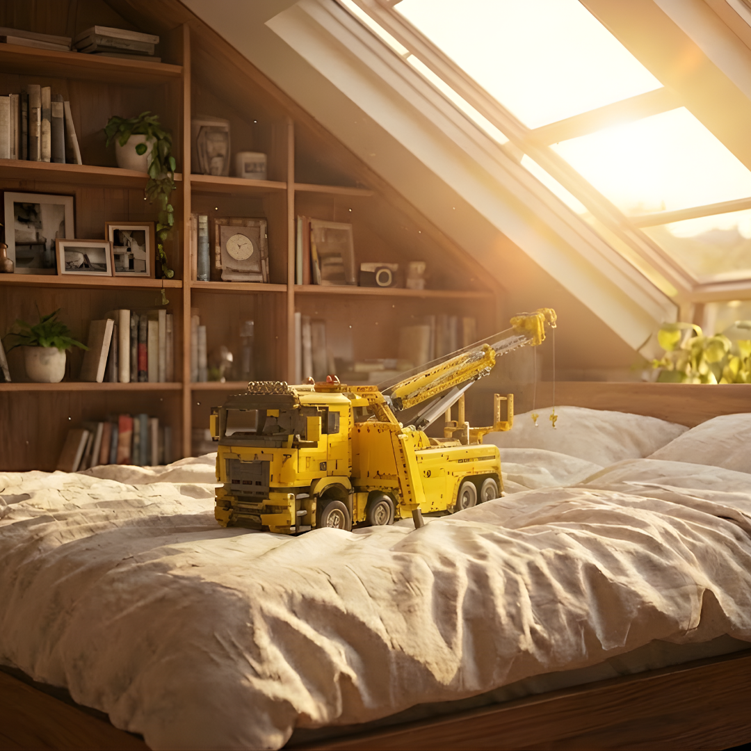 Esqueça modelos comuns: o MAN TGS é um colosso de 4.883 peças que recria com fidelidade os gigantescos caminhões de resgate do tipo "Rotator", as únicas máquinas capazes de girar o guindaste pesado 360 graus para endireitar carretas tombadas nas rodovias europeias.