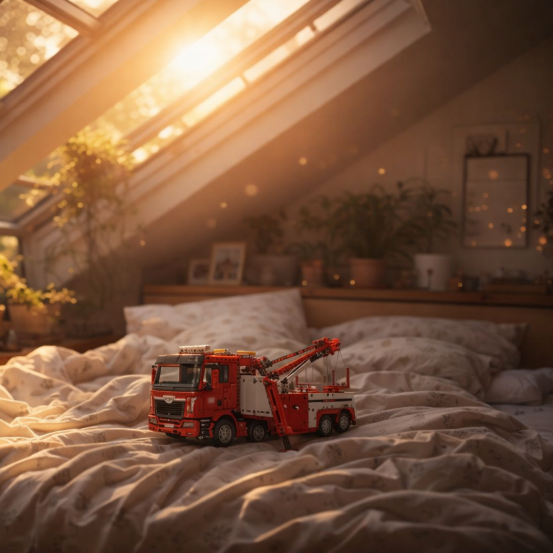Esqueça modelos comuns: o MAN TGS é um colosso de 4.883 peças que recria com fidelidade os gigantescos caminhões de resgate do tipo "Rotator", as únicas máquinas capazes de girar o guindaste pesado 360 graus para endireitar carretas tombadas nas rodovias europeias.