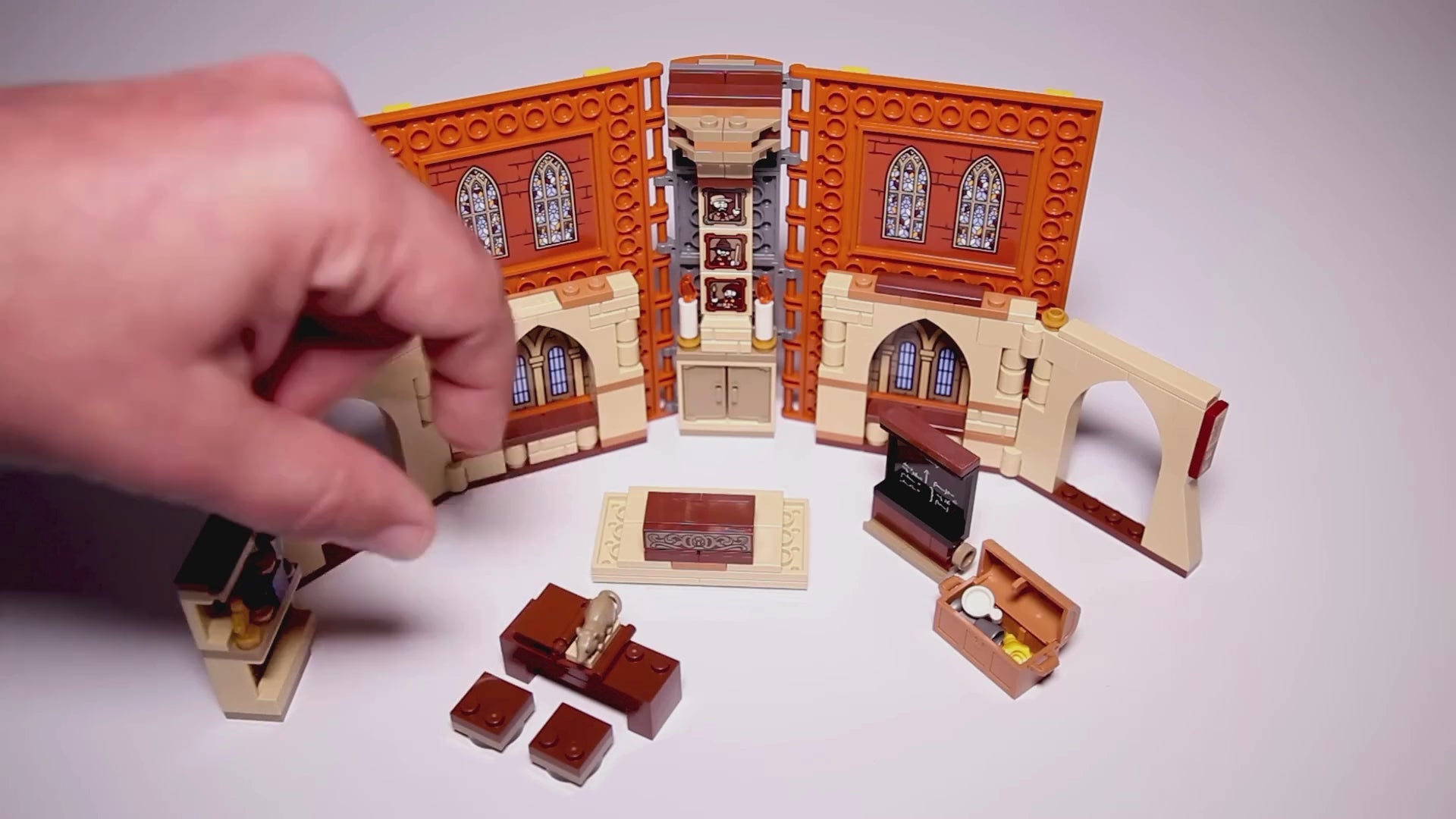Tudo isso montado dentro de um livro mágico que se abre e revela a sala de aula completa, perfeita pra brincar, colecionar ou deixar em exposição com orgulho na sua coleção de Hogwarts! 🏰✨