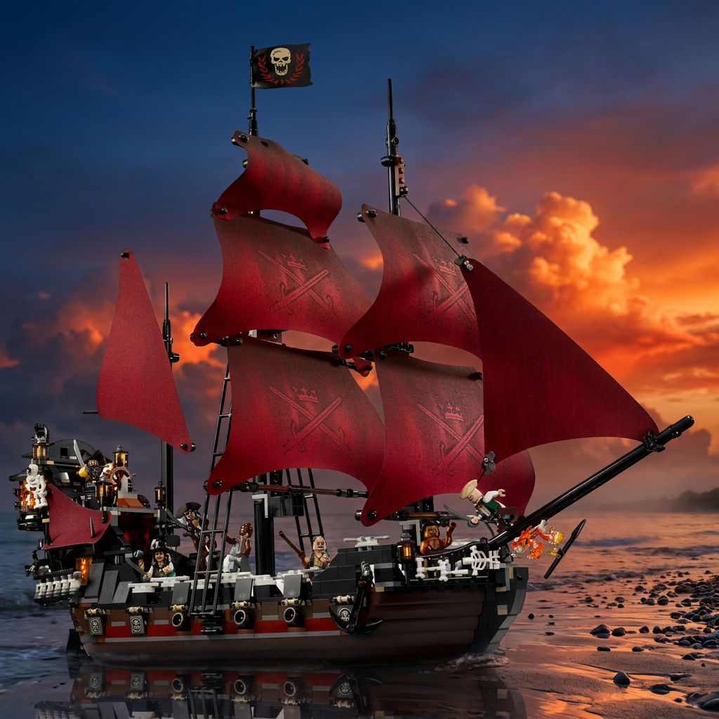 Este modelo de 1097 peças recria cada detalhe dessa embarcação épica, dos mastros imponentes que cortam o horizonte aos canhões que ecoam batalhas lendárias nos mares de Piratas do Caribe.