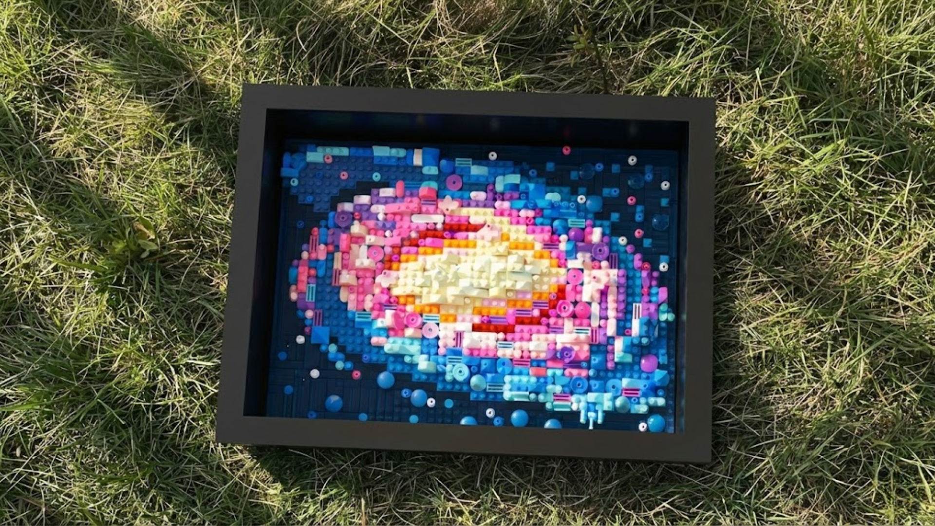 É uma interpretação artística e moderna do espaço sideral feita com peças nano, perfeita para quem é fascinado por astronomia e pelo desconhecido.